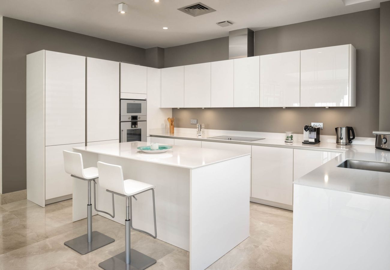 This penthouse offers an open plan living room with high ceilings connecting the kitchen, dining room and one of the terraces. The kitchen is open design with modern appliances.