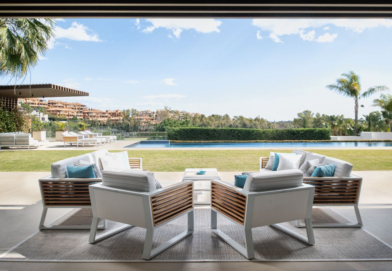 The cool and contemporary Villa El Aire is located in La Alquería, a private gated development bordering the Atalaya Golf & Country Club, one of the oldest and most prestigious clubs in Spain. Conveniently located near first-rate facilities and beautiful sandy beaches, and just a short drive to the high-end shopping centres, restaurants and bars of Puerto Banús, this luxury villa to rent is perfect for sun, sea, golf and sightseeing holidays.