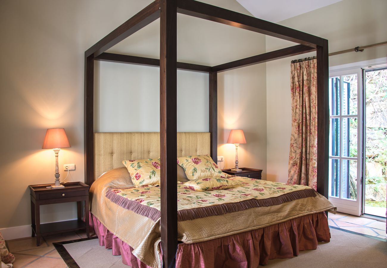 There are three generous ensuite bedrooms on the ground floor, all with French doors to the garden. Upstairs there is the Master Suite, with its vaulted ceiling and ornate décor and a private terrace, as well as another more contemporarily furnished bedroom.