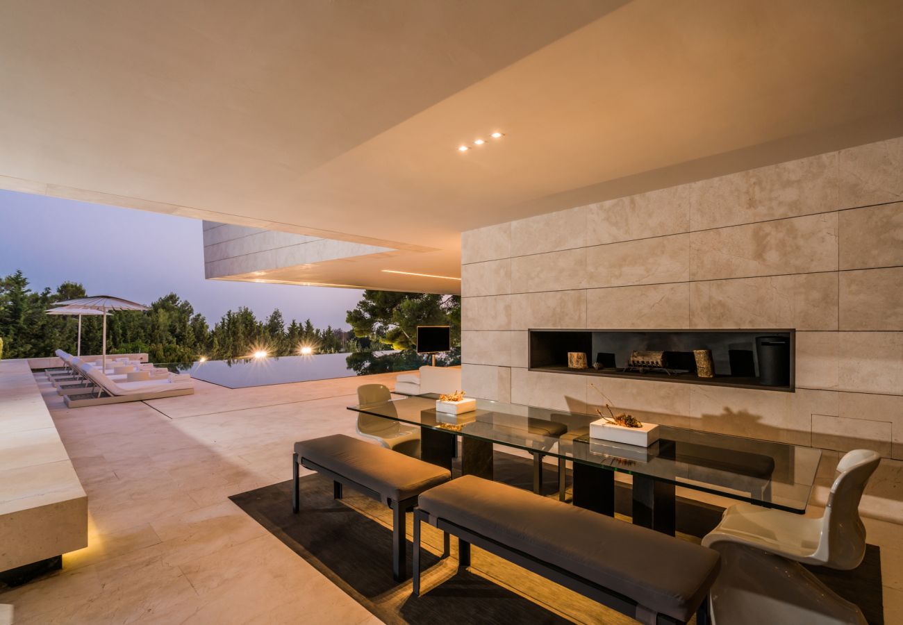 Villa Roca is a modern villa designed by the famous Spanish architect Joaquín Torres. The house boasts 3,000 sq.m. and sits in a plot of 6,500 sqm. with mature blooming gardens and sea views. Some of the high-end features of this eco-friendly luxury villa include a glass wine cellar, a luxurious spa with sauna, steam bath, cold bath, a fully equipped gym and a beauty salon. A glass wall in the multi-car garage displays collectable automobiles. The villas grounds include beautifully manicured gardens, a championship tennis course, an immense infinity pool, and a designer catering kitchen surrounded by contemporary artworks. Branching out from within the heart of the residence is the grand centerpiece - The Pulse - a stunning 15-metre painted steel scupture by Belgian artist Arne Quinze.